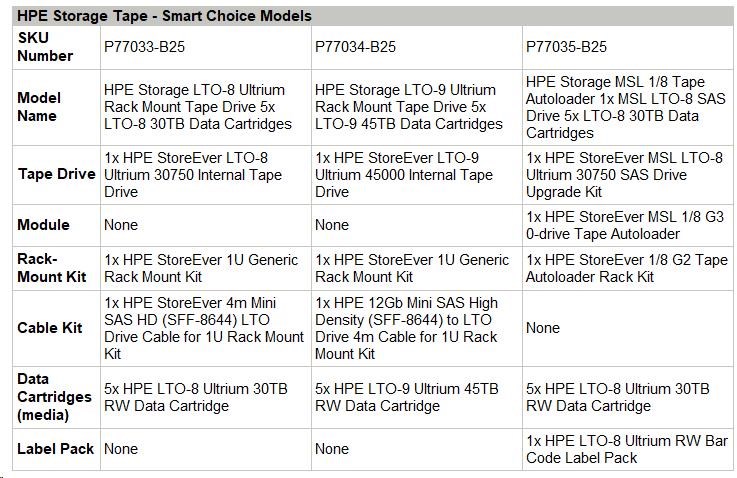 Technical specifications HPE Storage LTO-9 Ultrium Rack Mount Tape Drive 5x LTO-9 45TB Data Cartridges