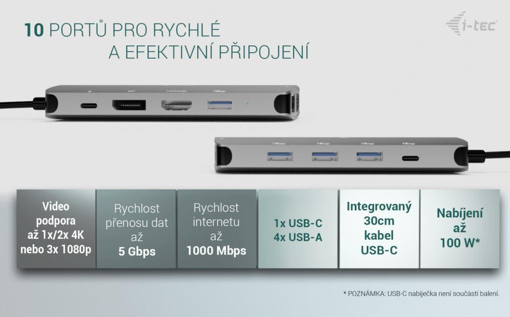 i-tec USB-C Metal Nano 3x Display (DP, HDMI and VGA) Docking Station, PD 100 W