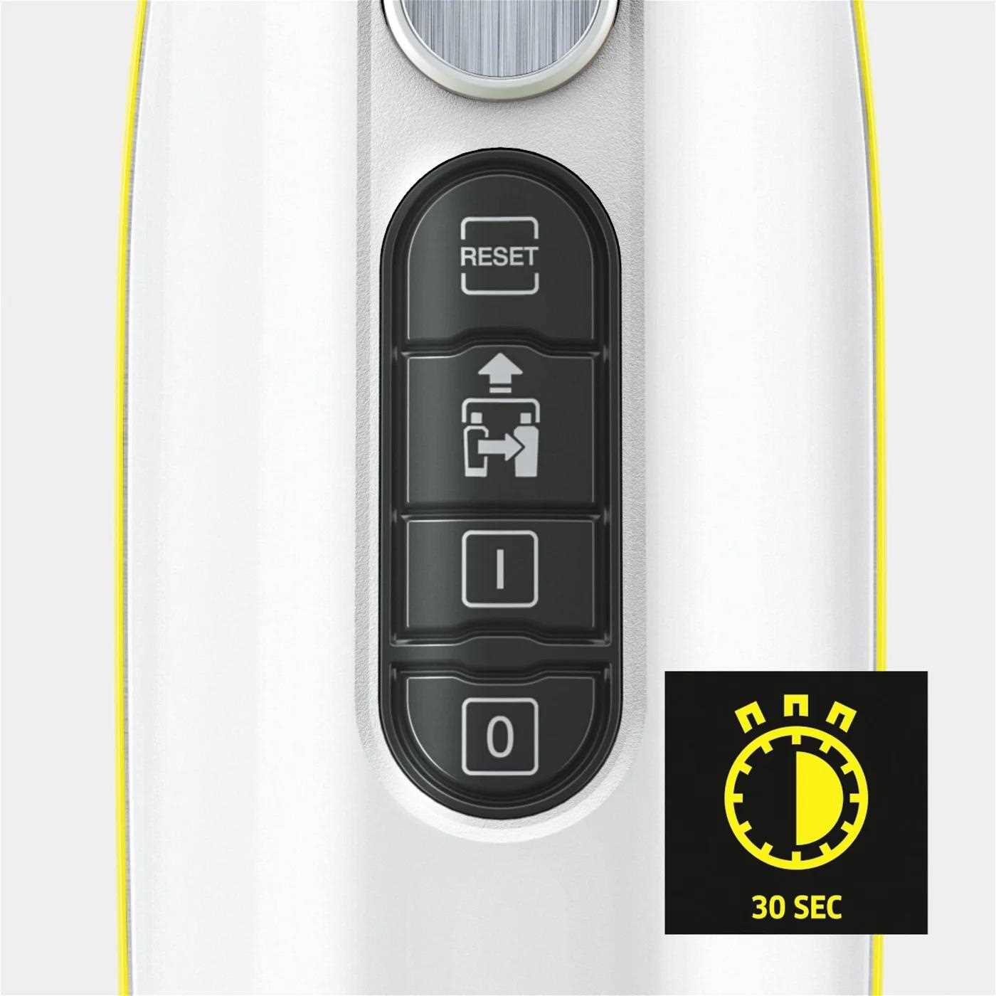Parowy czyszczarka to doskonały wybór, jeśli szukasz uniwersalnego urządzenia do różnych powierzchni i zabrudzeń. Czyszczenie powierzchni dzięki nasyconej parze jest skuteczne i łagodne. Czyszczenie odbywa się bez użycia chemikaliów i może usunąć nawet do 99% bakterii, zabrudzeń czy kamienia wodnego. KÄRCHER SC 3 Upright generuje ciśnienie do 5 barów. Ilość pary można regulować dzięki regulowanemu wylotowi. Zawsze więc idealnie dostosujesz się do powierzchni, na której pracujesz. Zbiornik na wodę ma pojemność 0,5 l, więc jest raczej przeznaczony do krótkiego czyszczenia. Zbiornik można oczywiście odłączyć, co ułatwia konserwację i napełnianie wodą. Praktyczny wskaźnik prawidłowej temperatury upraszcza obsługę odkurzacza parowego. Parowa czyszczarka KÄRCHER SC 3 Upright ma moc ogólną 1600 W.