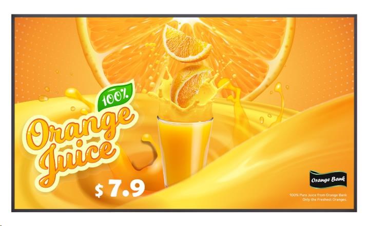 Screen size:55"; Resolution:Ultra HD 4k 3840x2160; Luminance (in nt):500; Operating time:24/7