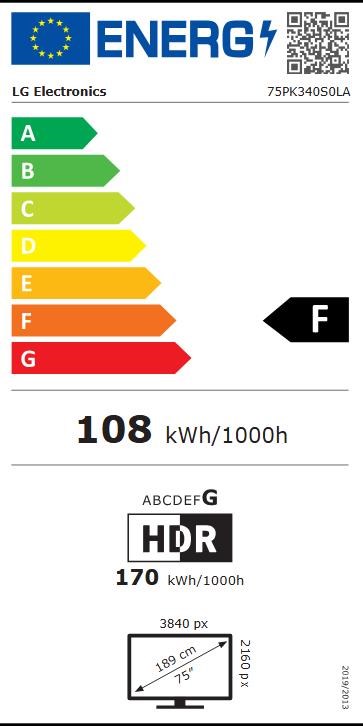 Screen size:75"; TV:LED; Resolution:Ultra HD 4k 3840x2160; Interface:Jack 3,5 mm výstup, LAN (RJ-45), HDMI, USB 2.0, RS-232; Picture format:16:9; Luminance (in nt):300; Operating time:16/7; Energy Class:F