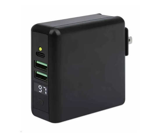 The Manhattan 4-in-1 Travel Wall Charger and Powerbank 8,000 mAh provides you with incredibly useful functions on one device. Use it as a USB wall charger to charge smartphones, tablets, eReaders, headphones and more from two USB-A and one USB-C port with per-port power up to 5 V / 2.4 A. You can also skip the wires altogether and charge compatible mobile devices on the 5 W wireless charging pad. For even more convenience, this all-rounder lets you charge on the go without plugging into a socket since it's also an 8,000 mAh powerbank. Its convenient digital number display lets you check the remaining battery at any time. Recharge the powerbank directly via AC on a power outlet or through its USB-C port. Finally, if you're an international traveler, you'll love its foldable US and swappable UK and EU plugs that let you charge devices in the many regions that offer these outlet types.