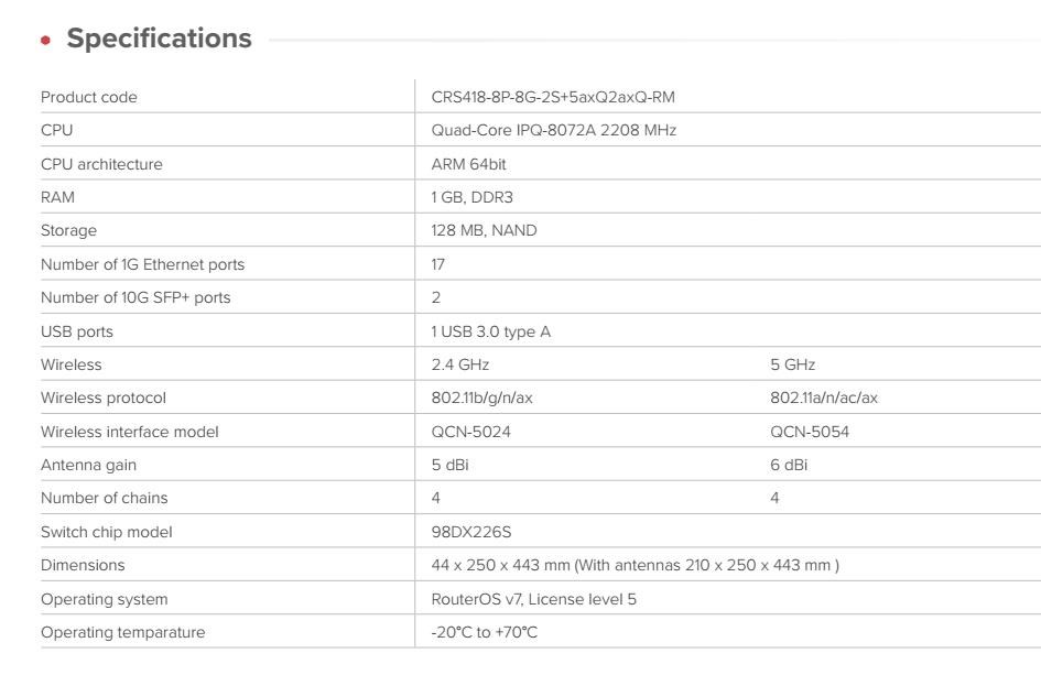 MikroTik CRS418-8P-8G-2S+5axQ2axQ-RM 4x4 MIMO WiFi6 16-portový Gigabit Cloud Router Switch