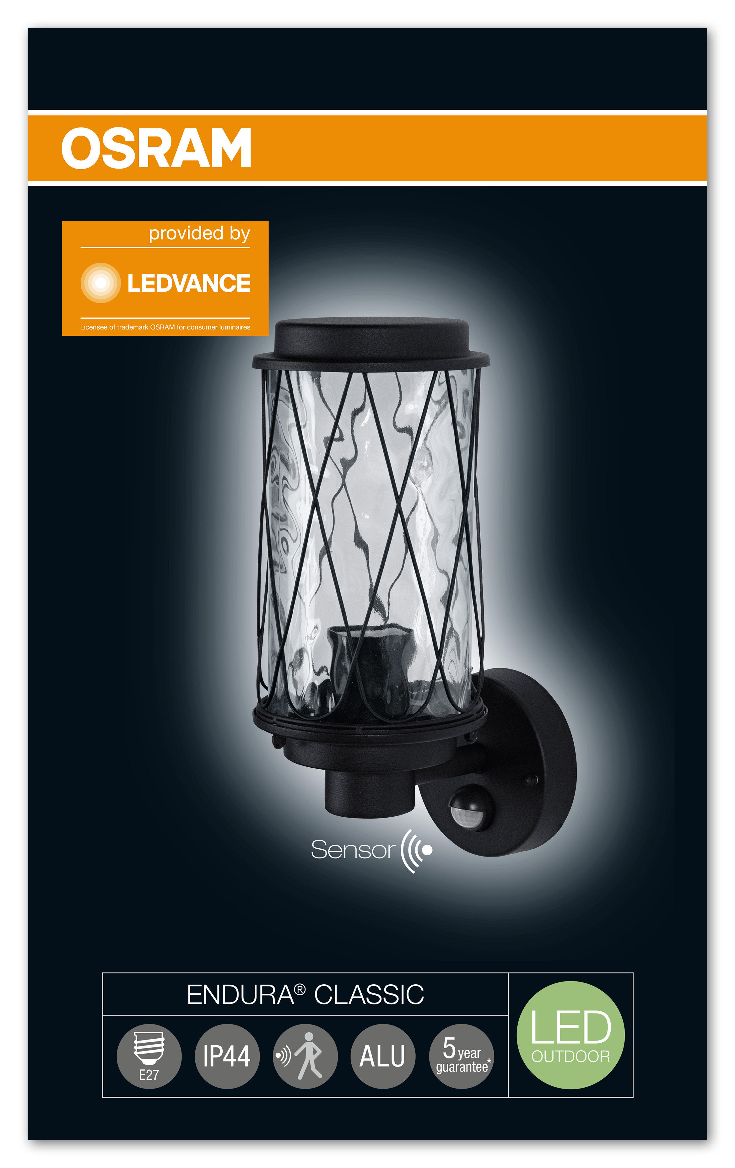 OSRAM svítidlo ENDURA CLASSIC CAGE UP SENSOR E27 BK