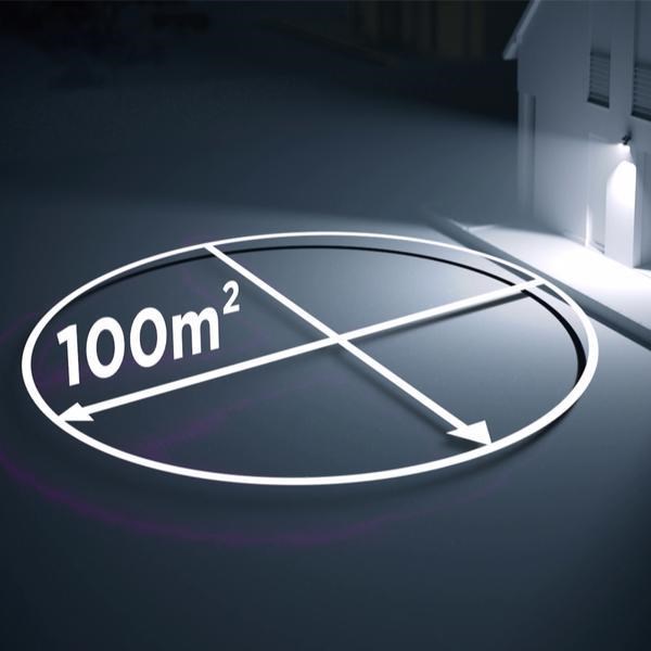 74 wysokiej jakości diody LED oświetla niemal tak samo jasno jak w ciągu dnia obszar do 100 m2 Twojego domu, z olbrzymią jasnością.
