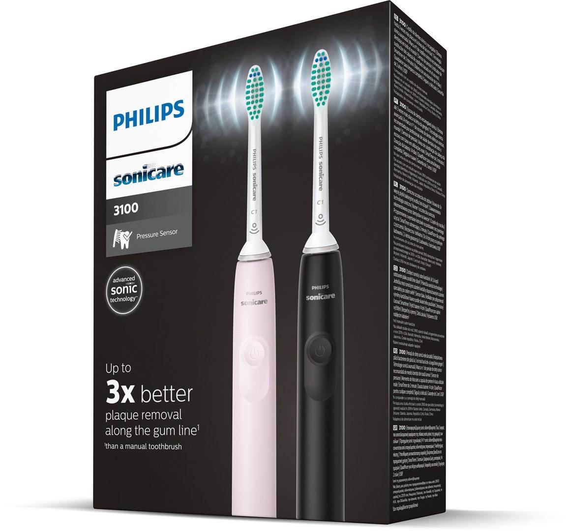 Philips HX3675/15 Sonicare elektrický zubní kartáček, sonický, časovač, tlakový senzor, 2 kusy, růžová a černá