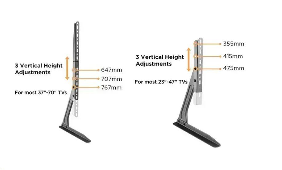 Nóżki do telewizora o nośności 50kg, na telewizory od 37" do 65", regulacja wysokości Stabilna podstawa do telewizora, uniwersalna, odpowiednia dla wszystkich typów, rozmiarów i marek telewizorów z obsługą standardu VESA. Regulacja wysokości, nośność 50kg, kolor czarny, gwarancja 3 lata. Zawartość opakowania obejmuje zestaw materiałów montażowych. Podstawa do telewizora, nóżki na TV Ergosolid Castor 1 Dane techniczne: nośność 50kg obsługiwane standardy VESA 100x100 do 800x500 zalecany przekątna TV 37" do 65" regulacja wysokości 620mm do 683mm szerokość podstaw 356mm przylegające podkładki antypoślizgowe minimalistyczny design stabilny, bezpieczny materiał stal materiał montażowy kolor czarny gwarancja 3 lata Ergosolid Castor 1 obsługuje standardy VESA: VESA 100x100 VESA 200x100 i 100x200 VESA 200x200 VESA 300x100 i 100x300 VESA 300x200 i 200x300 VESA 300x300 VESA 400x200 i 200x400 VESA 400x300 i 300x400 VESA 400x400 VESA 600x400 VESA 800x400 VESA 800x500Opis produktu został przetłumaczony przez sztuczną inteligencję i może zawierać nieścisłości.