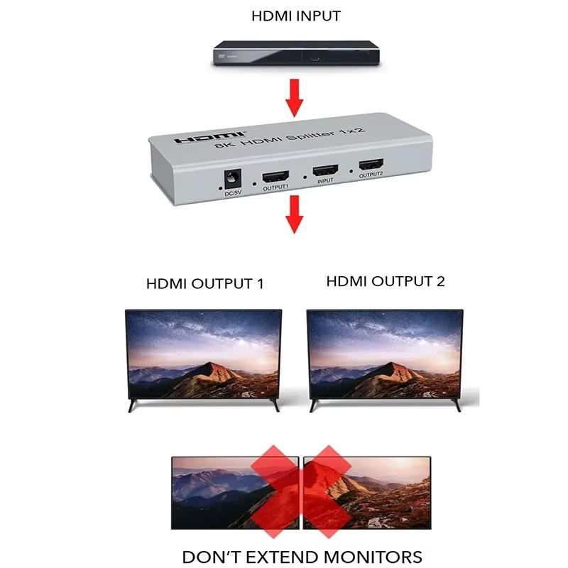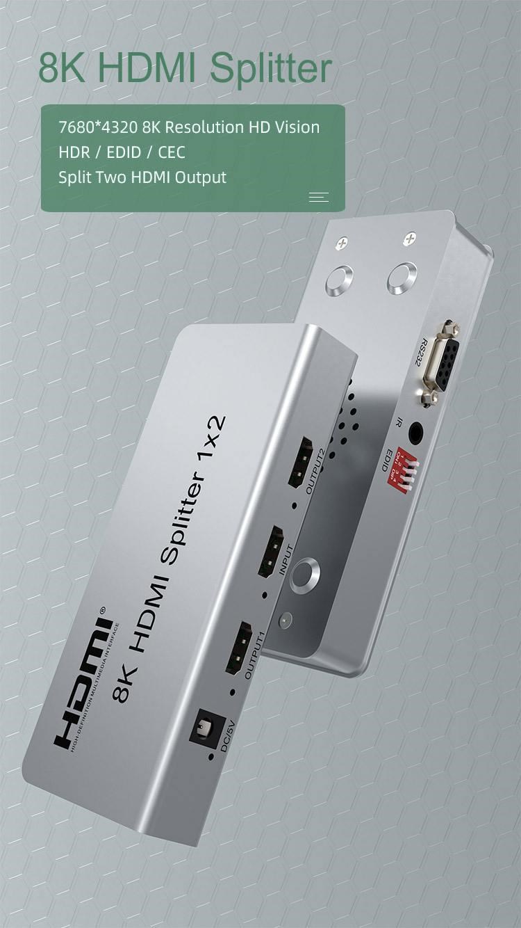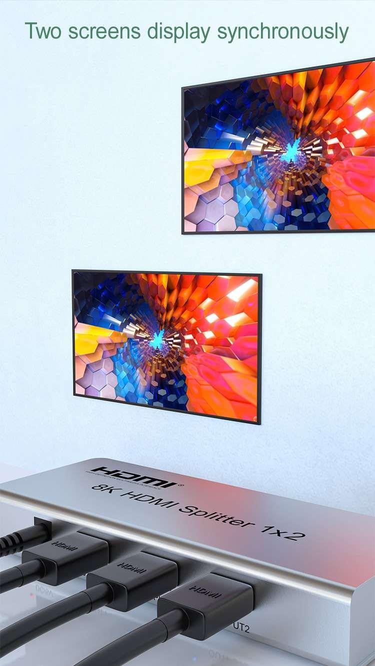 Splitter obsługuje sygnał HDMI o rozdzielczości do 8K@60Hz, 4K@120Hz lub FULL HD 1080p