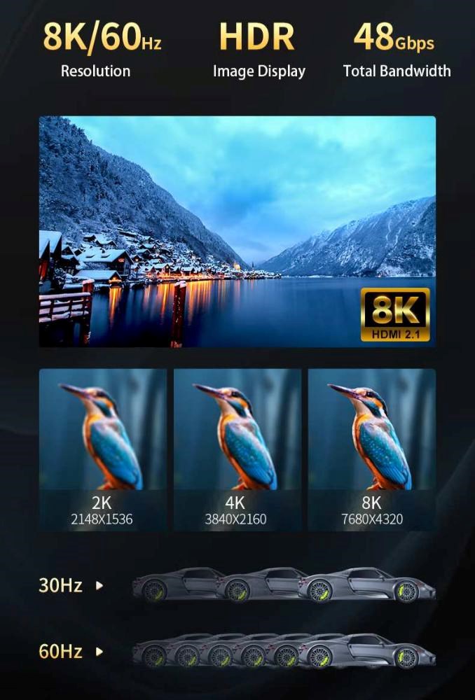 Cable/adaptor specification:HDMI cable; Cable version / Reduction:2.1; Input:HDMI; Output:HDMI