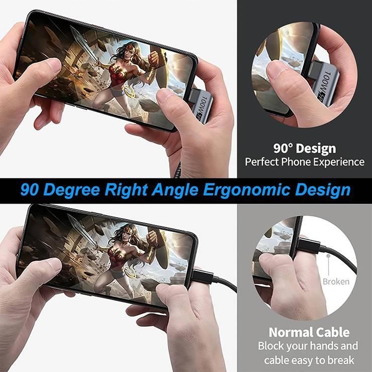 PremiumCord USB-C 2x zahnutý kabel ( USB 3.2 GEN 2x2, 5A, 100W, 20Gbit/s ) bavlněný oplet, délka: 2m