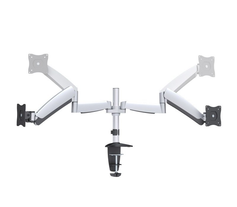 Stółowy aluminiowy uchwyt z klamrą mocującą do 2x monitorów LCD i mniejszego TV o przekątnej 13"- 27" oraz maksymalnej wadze 9 kg na ramieniu. Uchwyt VESA: 75x75, 100x100. Opis: 2x 60cm ramię - 3x zawias, pionowy podniesienie +90-40° GasSpring, obrotowy poziomo o 360°.Opis produktu został przetłumaczony przez sztuczną inteligencję i może zawierać nieścisłości.