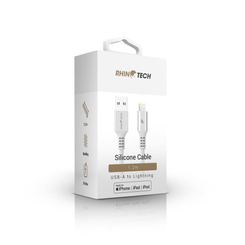 RhinoTech LITE MFi kabel s nylonovým opletem USB-A na Lightning 1.2m stříbrná