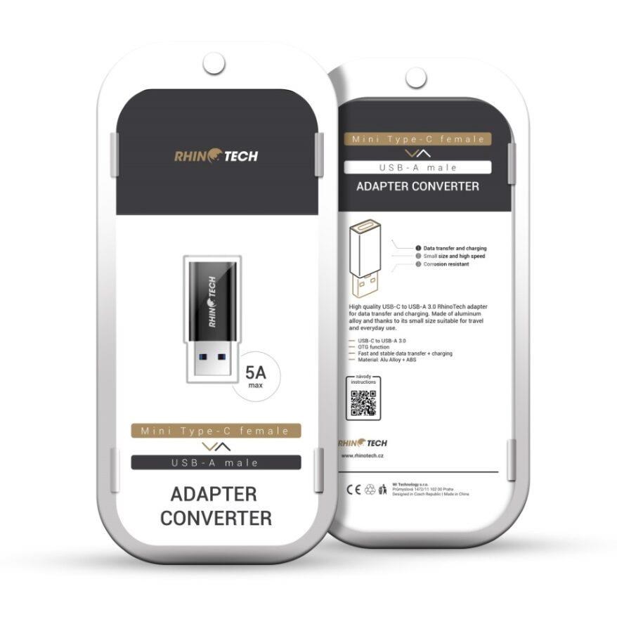 RhinoTech USB-C F na USB-A 3.0 M redukce, OTG. černá