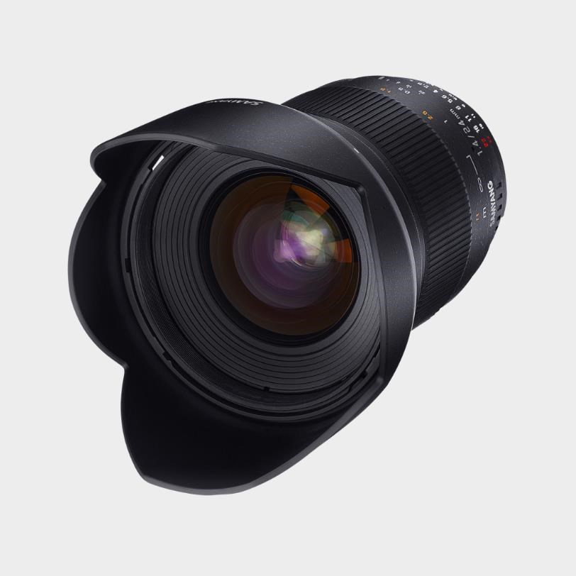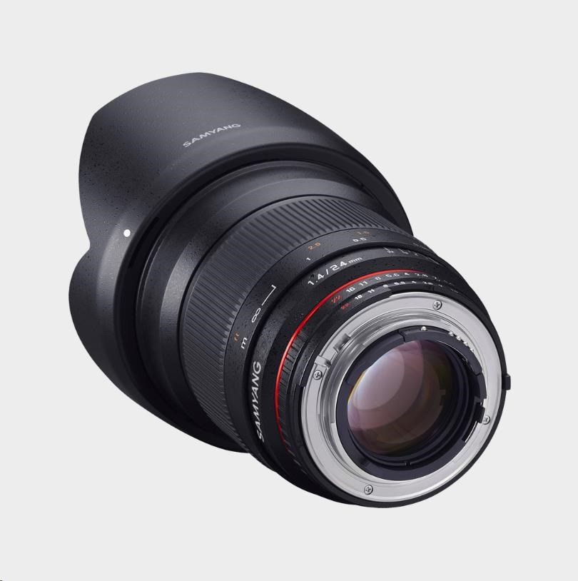 Samyang 24mm f/1.4 ED AS IF UMC is a fast, manually focused wide-angle lens compatible with full frame sensors. It is available in many mounts, including mirrorless cameras with APS-C or Micro Four Thirds sensors.
