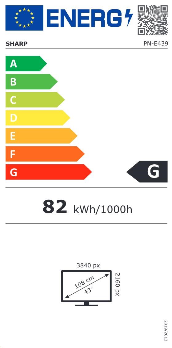 Screen size:43"; TV:LED; Resolution:Ultra HD 4k 3840x2160; Interface:USB-C 3.2, HDMI, VGA, USB, LAN, RS-232; Picture format:16:9; Luminance (in nt):350; VESA:400 x 200; Operating time:16/7; Energy Class:G