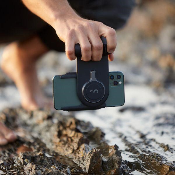 Czy zdarza Ci się, że pod koniec dnia pełnego nagrywania filmów i robienia zdjęć odczuwasz napięcie w nadgarstku? Jakikolwiek jest praktyczny, jego kształt z ergonomicznego punktu widzenia po prostu nie jest idealny. A szczególnie w porównaniu z lustrzanką. Właśnie ten problem rozwiązuje zestaw ProGrip od ShiftCam - zestaw, dzięki któremu zyskasz znacznie wygodniejszy i bezpieczniejszy uchwyt na Twój smartfon. Precyzyjne wyprofilowanie i wybór materiałów jest dopracowany do najmniejszych szczegółów. Brak tutaj opaski na kciuk i ergonomiczne zaokrąglenia, aby siła wywierana przez dłoń była równomiernie rozłożona. Trwała powłoka powierzchniowa rączki zapobiega jej lepkosci i zużyciu w miarę upływu czasu. Wysokiej jakości gumowa powłoka jest antypoślizgowa, odporna na pot i jednocześnie miękka w dotyku.Gotowa bezprzewodowa powerbank i statyw w jednym