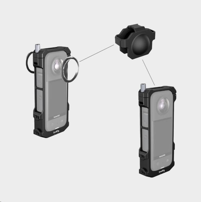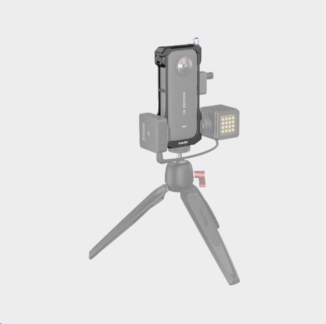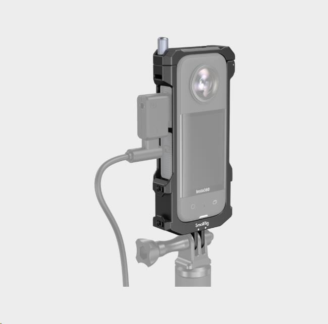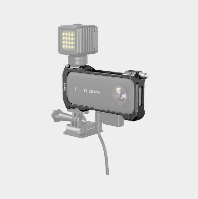 Wypukła rama zawiera silikonowe poduszki, zapobiegające zarysowaniom. Za pomocą śruby bezpiecznie blokuje kamerę, która jest umieszczona w ramie bezpośrednio z jej górnej części.