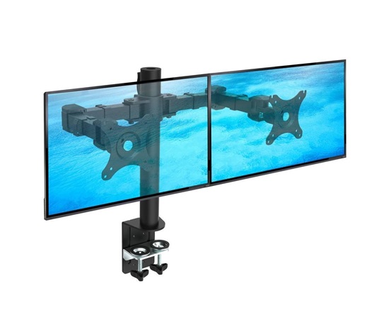 Stolny uchwyt na 2 monitory Ergosolid NF12 Stolowy uchwyt na 2 monitory 10-30", obrotowy +/- 180°, składany +85°/-15°, pivot, regulacja wysokości 20-34cm, długość ramion 36cm, VESA 75x75 i 100x100, niezawodny uchwyt do biurka 20-100mm, nośność 20kg Stolowy uchwyt do niezawodnego zawieszenia dwóch monitorów i ich niezależnej regulacji. Uchwyt wyróżnia się swoją jakością, niezawodnością i łatwym ustawianiem pozycji zawieszonych monitorów. Bardzo łatwo ustawisz wysokość monitorów (bez użycia narzędzi), pochylenie, obrócenie na boki, rotację ekranów (obrót w orientacji poziomej lub pionowej), korektę płaszczyzny ekranu. Widełki uchwytu są dostosowane do prowadzenia kabli, wyprowadzenie znajduje się nad blatem biurka. Mocowanie uchwytu jest możliwe na krawędzie wszystkich blatów o średnicy 20mm do 100mm. Uchwyt jest odpowiedni do zawieszenia monitorów o przekątnej 10" do 30" z wagą do 10kg (całkowita nośność 20kg). Kolor czarny. Gwarancja 3 lata. Stolowy uchwyt na 2 monitory Ergosolid NF12 Dane techniczne: całkowita nośność 20kg do monitorów o przekątnej 10" do 30" wspiera standardy VESA 75x75 i 100x100 regulowana wysokość 200-340mm niezależna regulacja każdego monitora obrot do boku +/- 180° pochylenie +85° do -15° funkcja PIVOT - obrócenie monitora na szerokość lub na wysokość ustawienie odległości monitora od uchwytu długość ramion 360mm 3 niezawodne zawiasy do ustawienia wymaganej pozycji każdego ramienia materiał stal mocowanie na krawędzi wszystkich blatów o średnicy 20mm do 100mm kolor czarny Opakowanie zawiera elementy montażowe gwarancja 3 lata Wysokiej jakości stolny uchwyt do mocowania i pozycjonowania 2 monitorów Ergosolid NF12 Uchwyt obsługuje standardy VESA do mocowania monitorów: VESA 75x75 VESA 100x100 Stolny uchwyt na 2 monitory ERGOsolid NF12 jest odpowiedni do zawieszenia wszystkich dostępnych marek monitorów. Uchwyt jest kompatybilny z monitorami Acer, AOC, Asus, BenQ, Dell, Eizo, Fujitsu, Hanspree, HP, iiyama, Lenovo, LG, Marshall, MSI, NEC, Neovo, Panasonic, Philips, Samsung, Sharp, ViewSonic, All in One PC i innymi. Dzięki doskonałej jakości, wytrzymałości i niezawodności, te uchwyty sprawdziły się także w trudnych warunkach: sale szkolne, biblioteki, szpitale, hale produkcyjne i fabryki.Opis produktu został przetłumaczony przez sztuczną inteligencję i może zawierać nieścisłości.