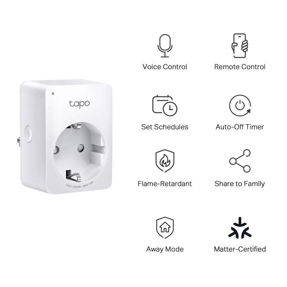 TP-Link Tapo P100M(EU) chytrá WiFi mini zásuvka (2300W,10A,2,4 GHz,BT)