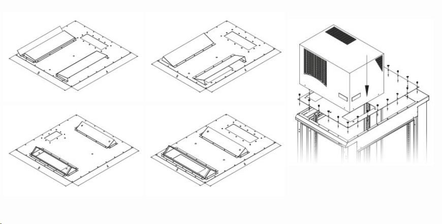 Abyśmy mogli w pełni wykorzystać potencjał jednostek klimatyzacyjnych, kierując strumień chłodzącego powietrza dokładnie zgodnie z potrzebami zainstalowanych technologii, dostarczamy redukcje instalacyjne do montażu na stojące rozdzielnice serii RDE i RIE. Są to metalowe panele, które są przykręcane do dużego otworu w górnej części rozdzielnicy, na które można zamontować klimatyzację. Redukcje są symetryczne, więc zmiana kierunku przepływu powietrza jest możliwa przez obrócenie redukcji. Różne rozmiary redukcji i orientacja otworów na chłodzące powietrze są przedstawione w tabeli na tej stronie. Aby ułatwić dostęp do panelu sterowania termostatu, można go zamontować w 2 pozycjach, po prostu wkładając go do konektora (zobacz podręcznik montażu).