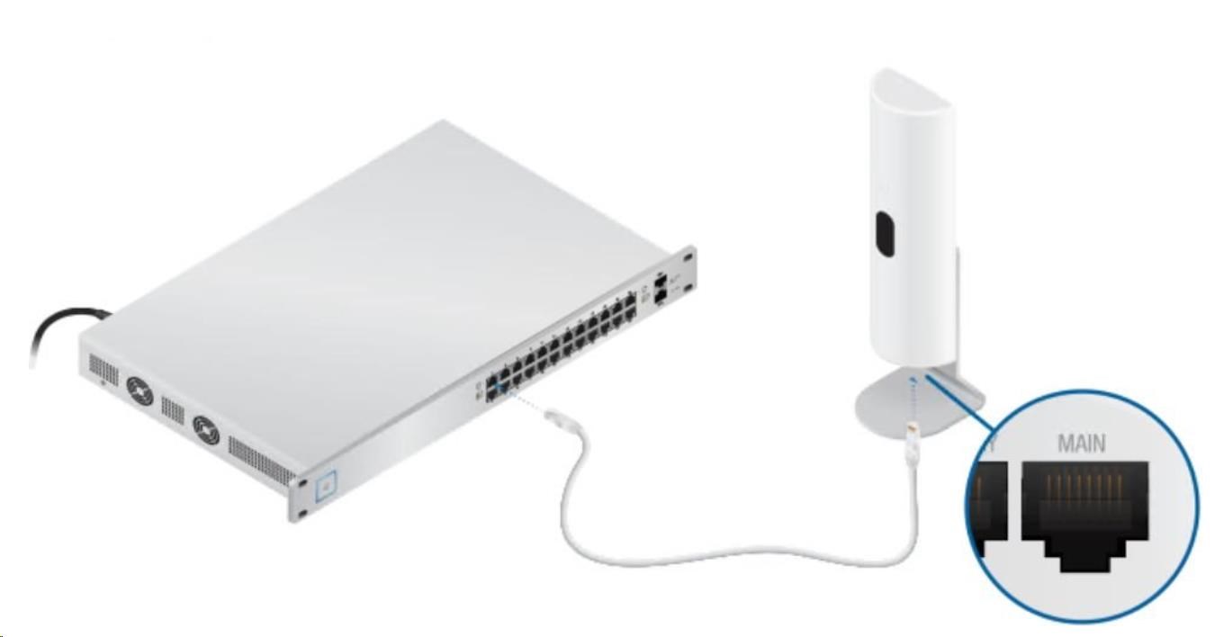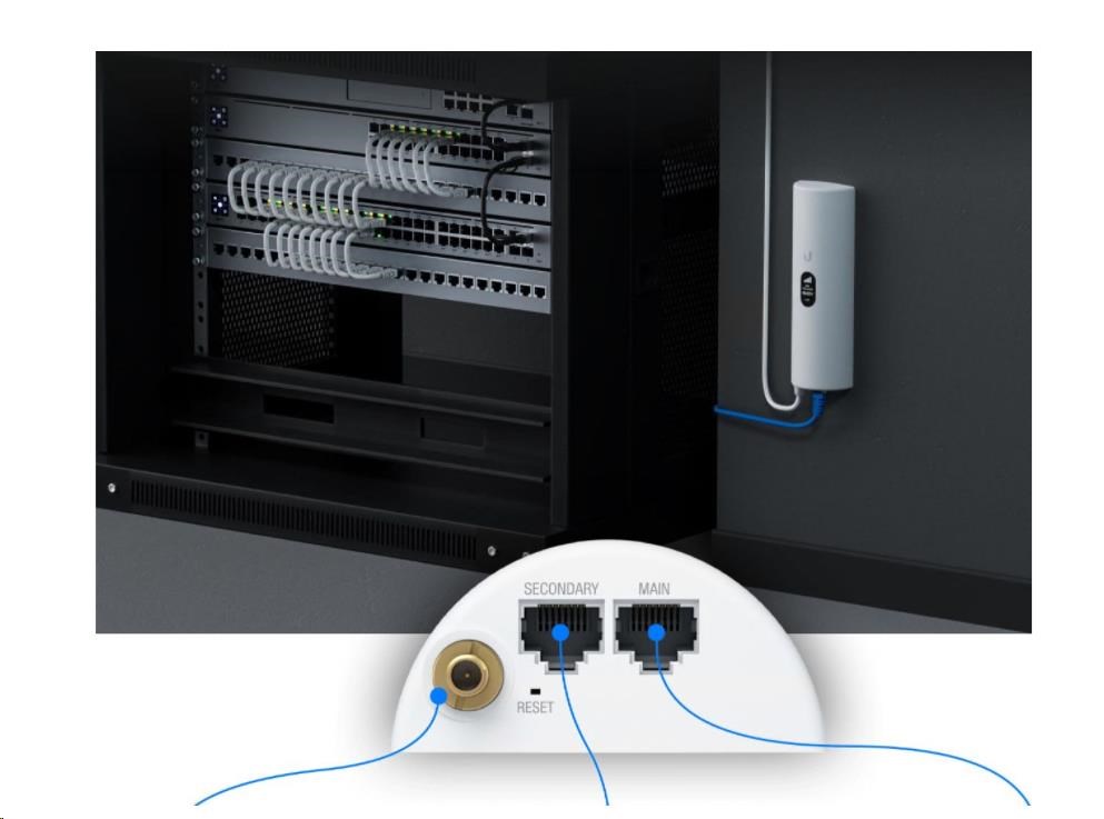 Ubiquiti U-LTE-Pro możesz umieścić w dowolnym miejscu o najlepszym sygnale, ponieważ można go zasilać przez PoE+ 802.3at z przełącznika, np. jak UniFI PoE Switch. Możesz go zamontować na ścianie za pomocą uchwytu montażowego lub użyć metod klejenia i mocowania na powierzchni. Urządzenie posiada port sekundarny, który oferuje przelotkę i pasywny przesył PoE (przydatny dla kamery, punktu dostępowego lub innego urządzenia).