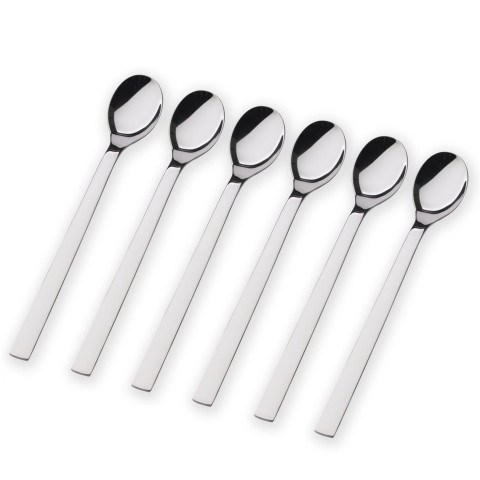 Eleganckie rozwiązanie do wysokich szklanek. Łyżeczki do latte macchiato z kolekcji Nuova zostały zaprojektowane z myślą o długich uchwytach, które bez trudu dosięgają dna wysokich naczyń. Są idealne nie tylko do warstwowych kaw, ale także do deserów lodowych i koktajli.