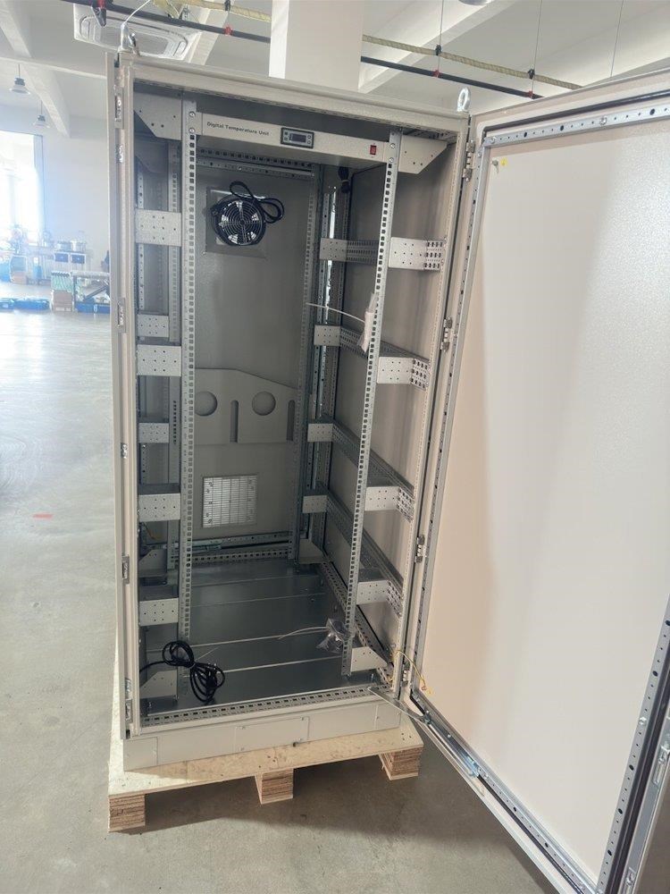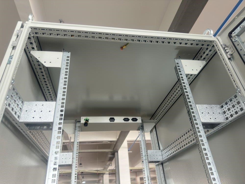 Rozdzielacz do instalacji urządzeń danych i telekomunikacyjnych, wentylacja z termostatem, podstawka, szary.
